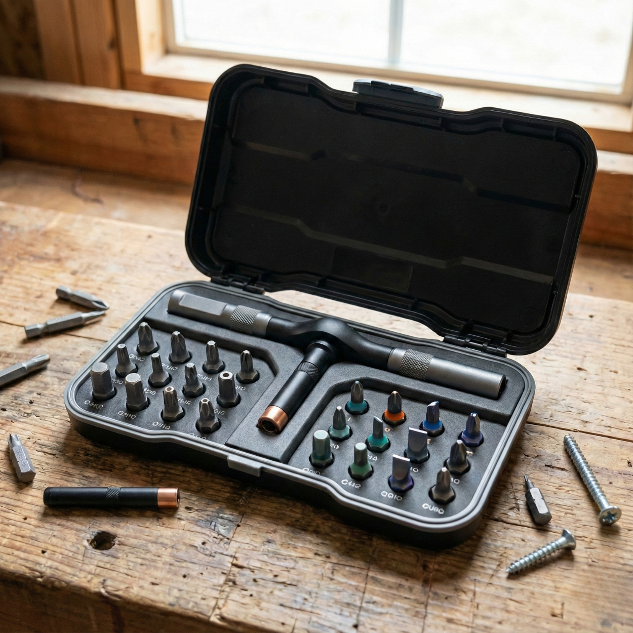 Sleek organization meets rugged durability. This compact hard shell protects a full array of precision bits and a modular driver, ensuring you are always prepared. The definitive, portable set for the organized modern craftsman.